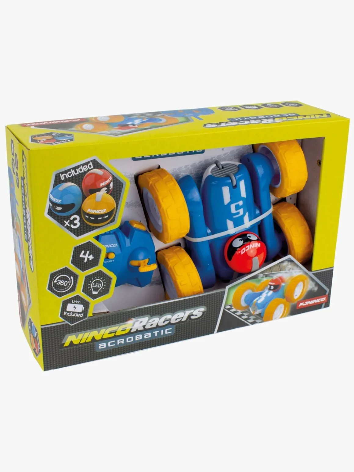 – Indeholder: 1 fjernstyret bil, 1 fjernbetjening, 3 hjelme.