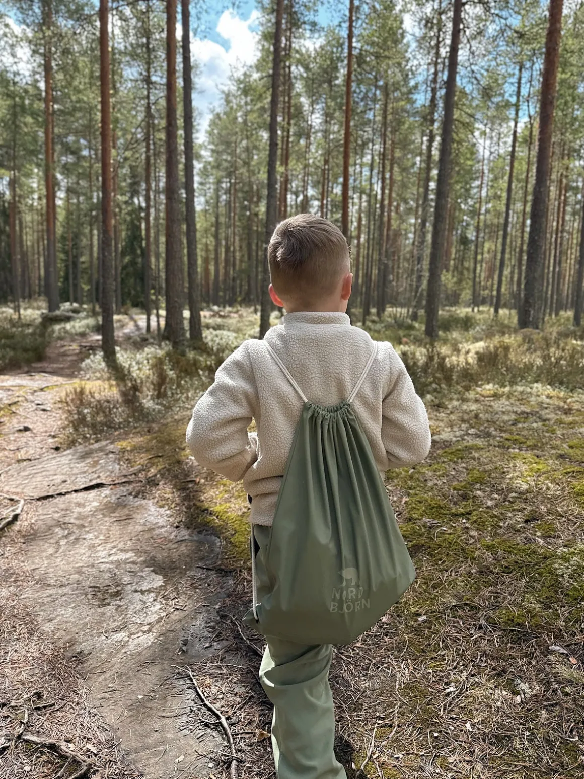 – Gymnastikposen kan bæres på ryggen ved at bruge snorene som skulderstropper.