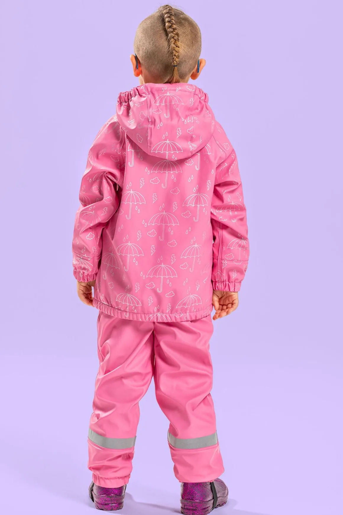 | Egenskaber | Fodstropper Refleksdetaljer Aftagelig hætte Vandtæt Vandafvisende Svejsede sømme |