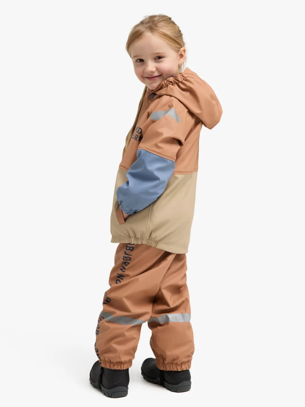 – PU-materialet går ca. 8 cm op i ærmer og benender for at sikre, at der ikke trænger vand ind.