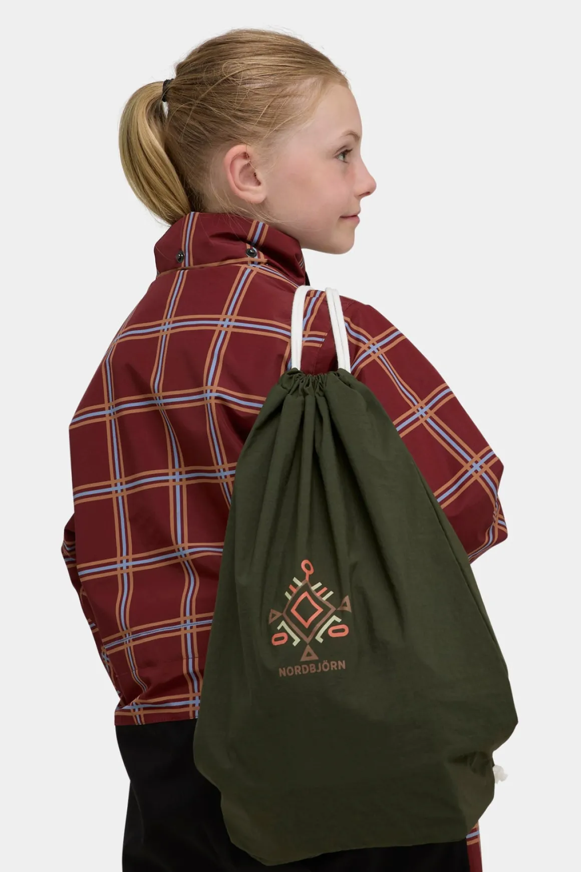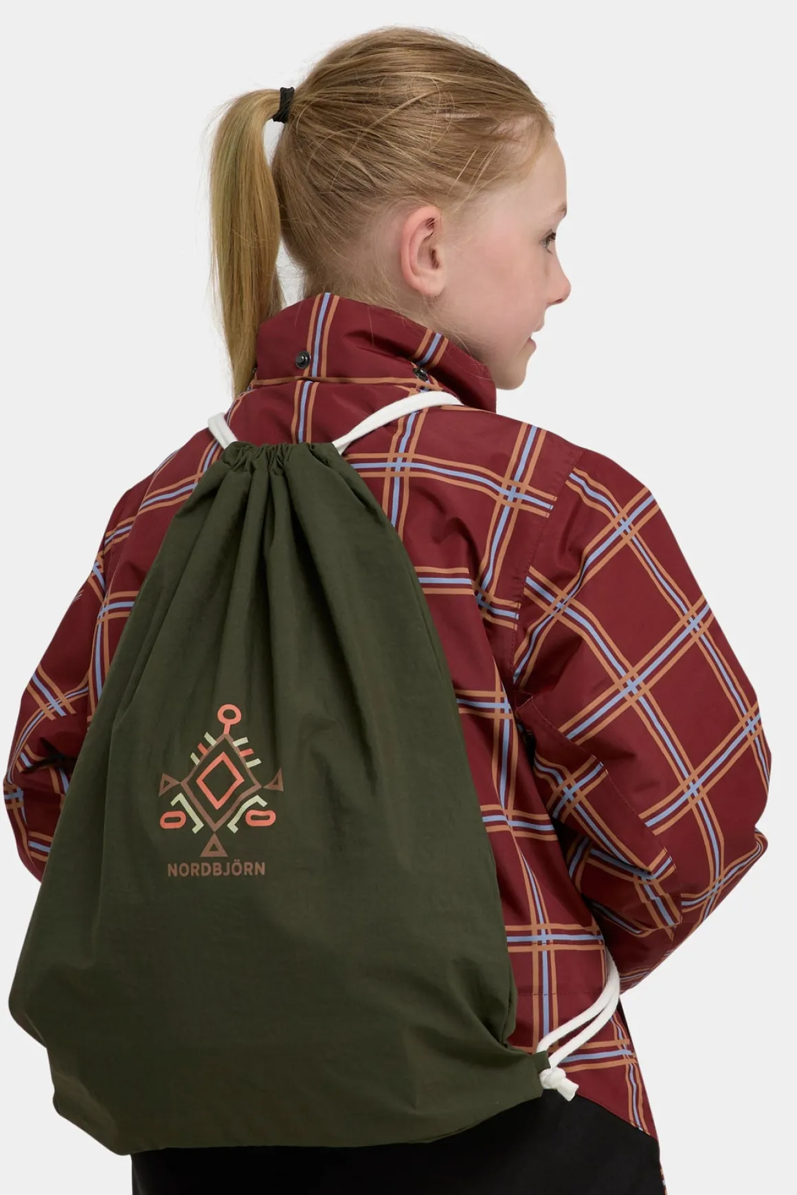 – Gymnastikposen kan bæres på ryggen ved at bruge snorene som skulderstropper.