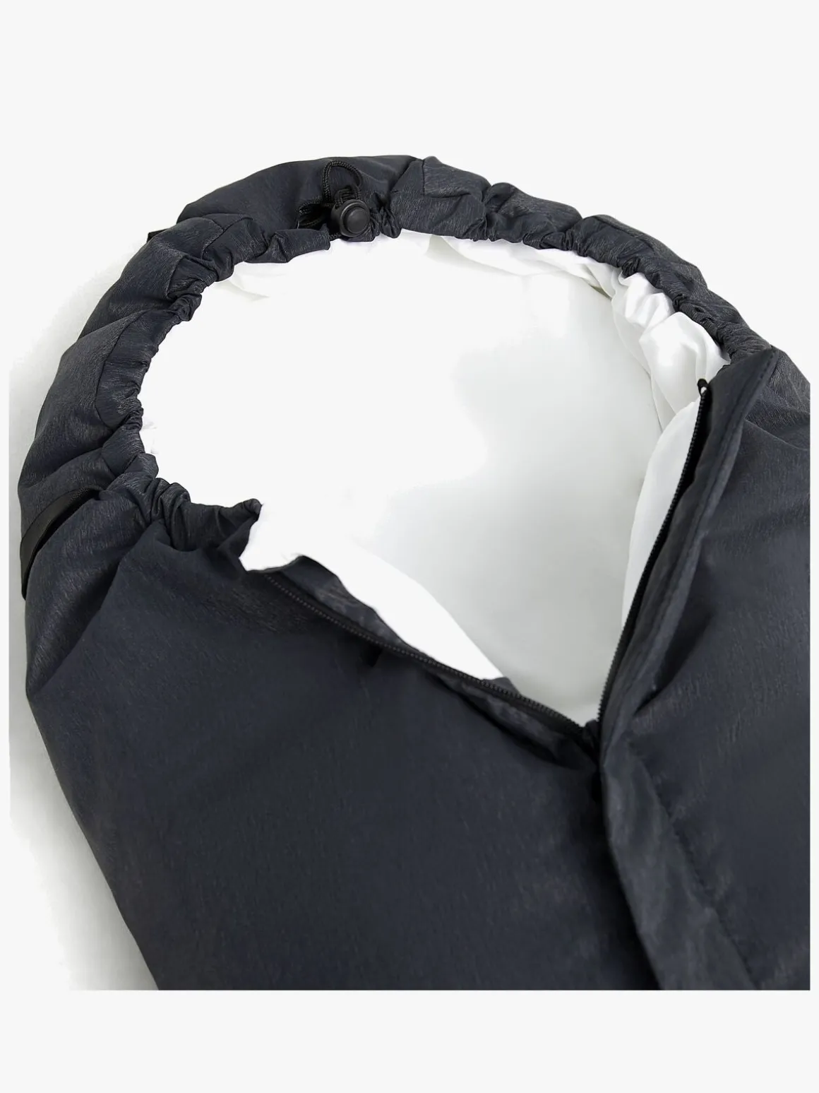 Køreposens udvendige materiale består af polyester, og indvendigt er posen foret med blød bomuld. Polstringen består af 50 % gåsedun og 50 % andedun, som sørger for at holde dit barn varmt. Køreposen kan åbnes helt op, så den kan bruges som et hyggeligt tæppe, som dit barn kan ligge på. Når det er ekstra koldt, kan køreposen, ved hjælp af snører, sluttes tættere til omkring barnets hoved. Køreposen har en skridsikker belægning på bagsiden, der gør, at den ikke glider rundt i vognen, samt en smudsbeskyttelse på indersiden.