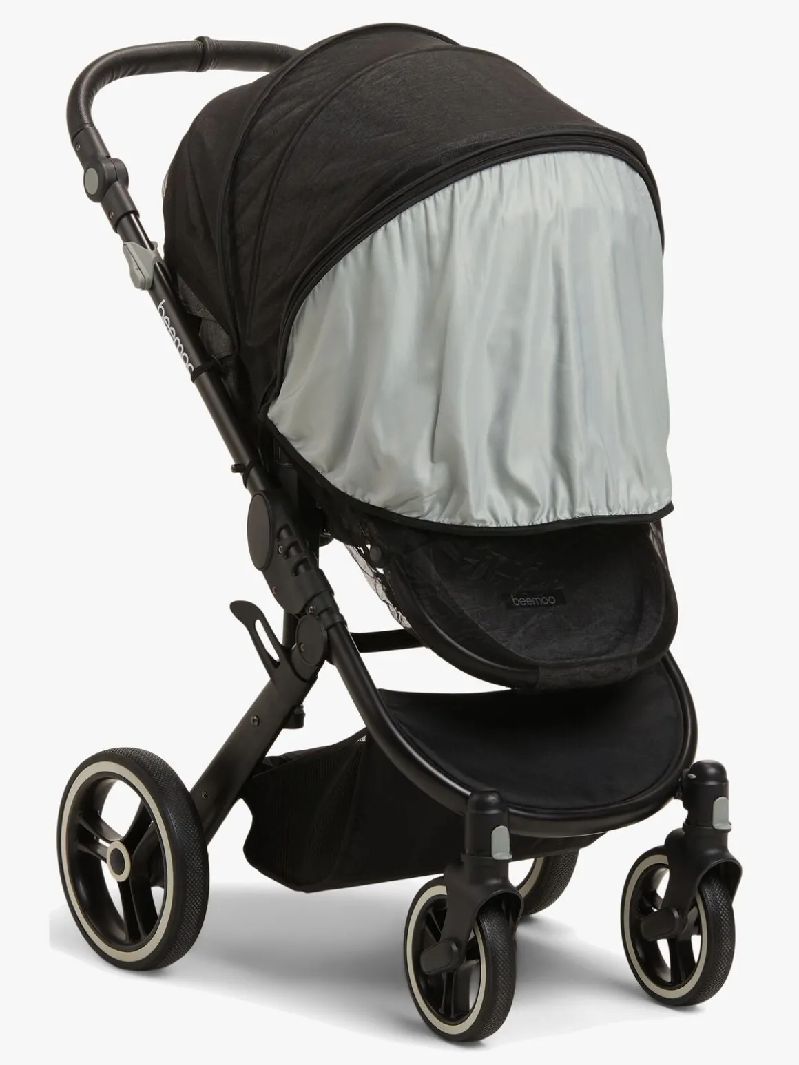 Universelt, heldækkende, gråmeleret myggenet fra Petite Cherie. Det er uv-beskyttende og let.