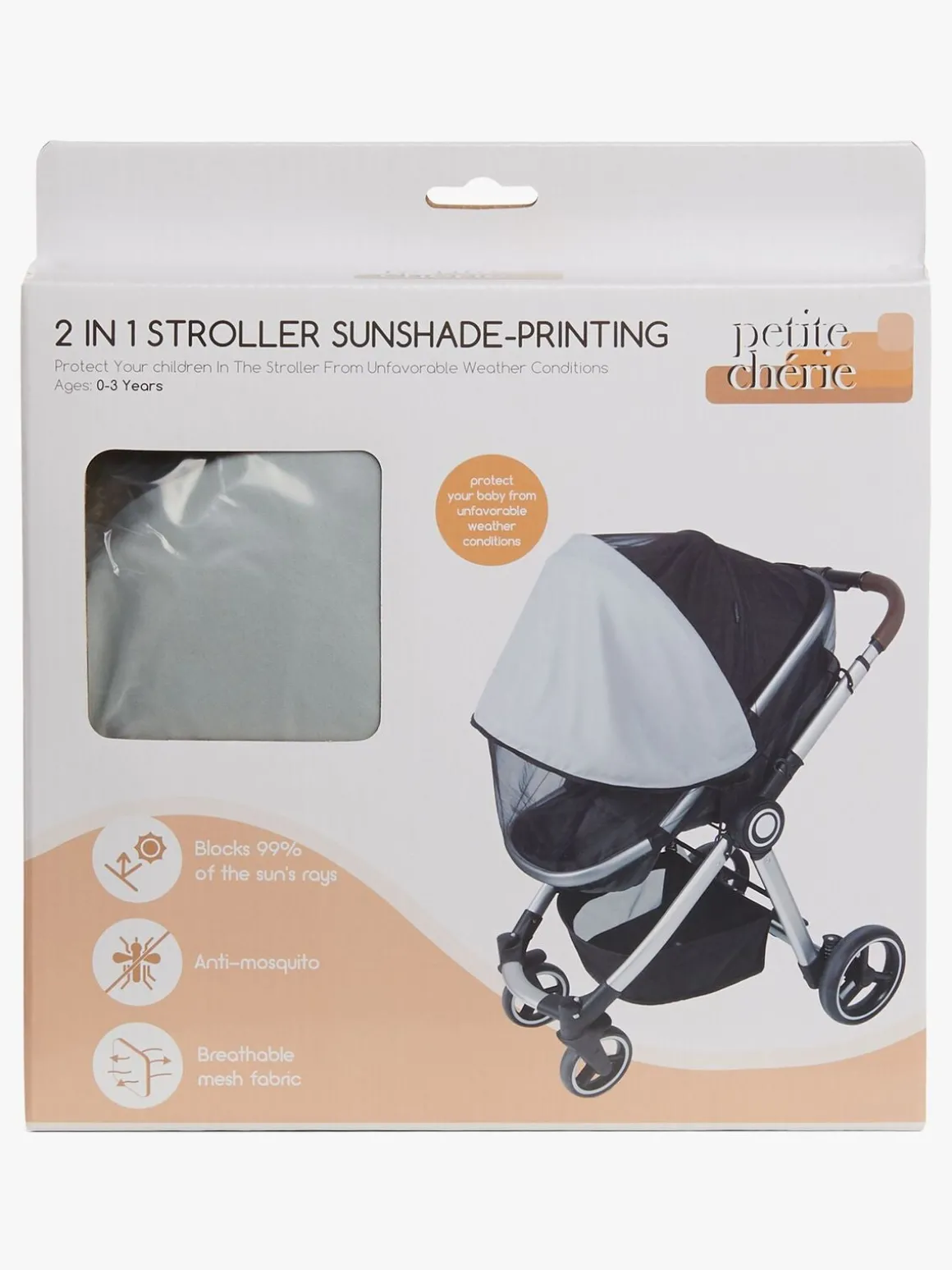 Petite Cherie Myggenet & Solsbeskyttelse, Gråmeleret
