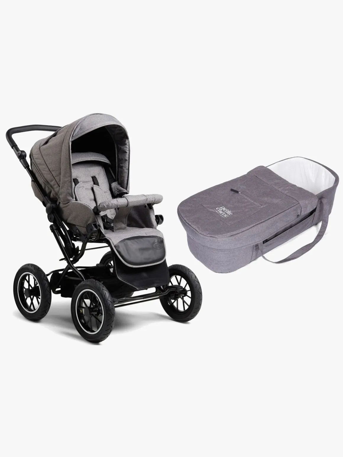 En babylift fra Petite Chérie følger med. Denne behagelige lift har to praktiske håndtag, vindbeskyttelse og praktisk opbevaringslomme på oversiden.