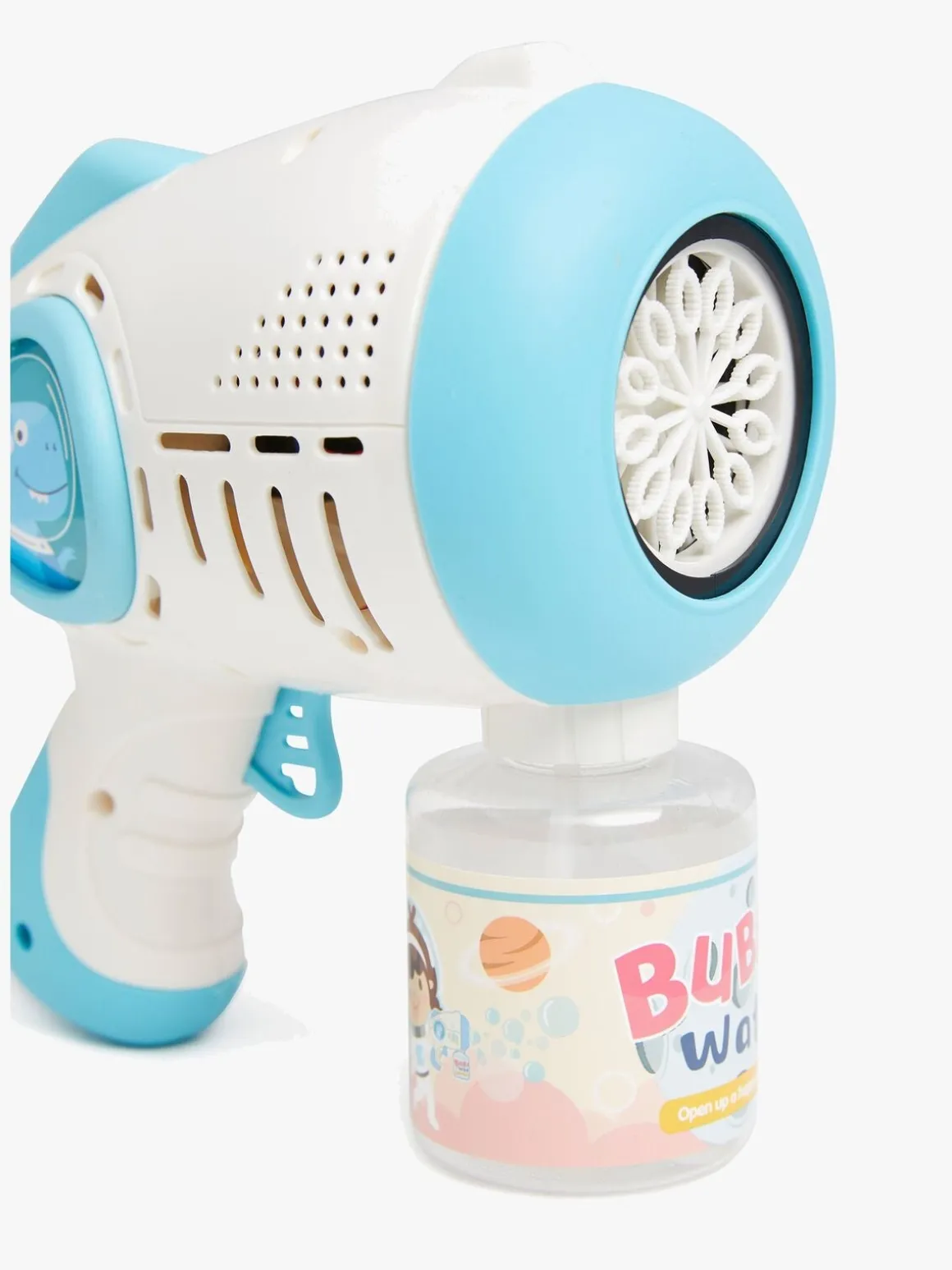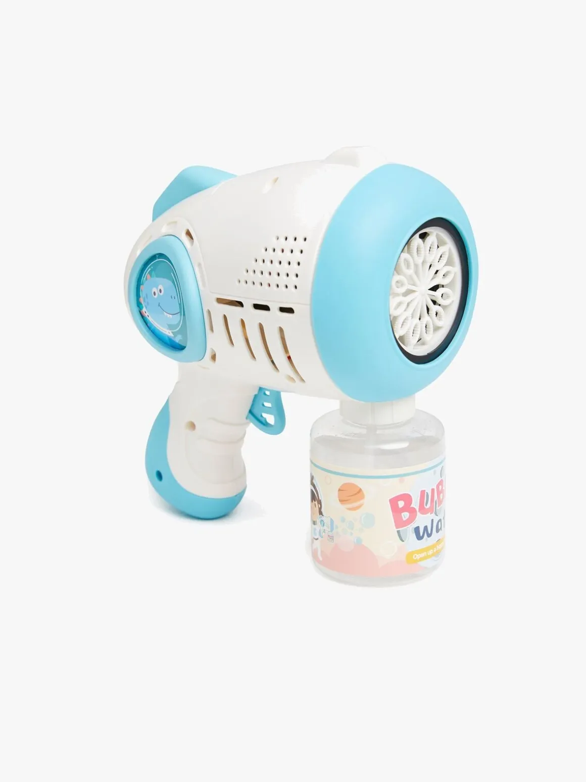 – Indeholder en sæbeboblepistol og en sæbebobleflaske.