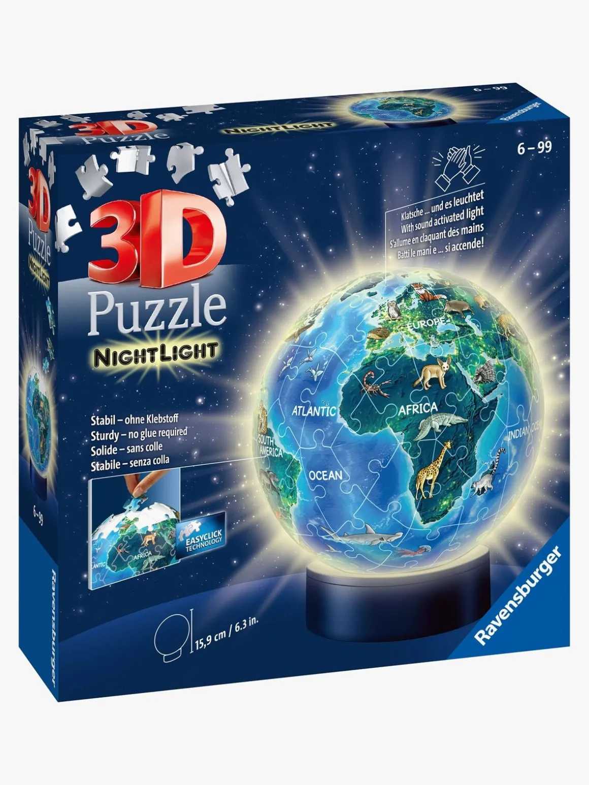 Ravensburger 3D Puslespil Globus Dyr, Natlampe 72 Brikker