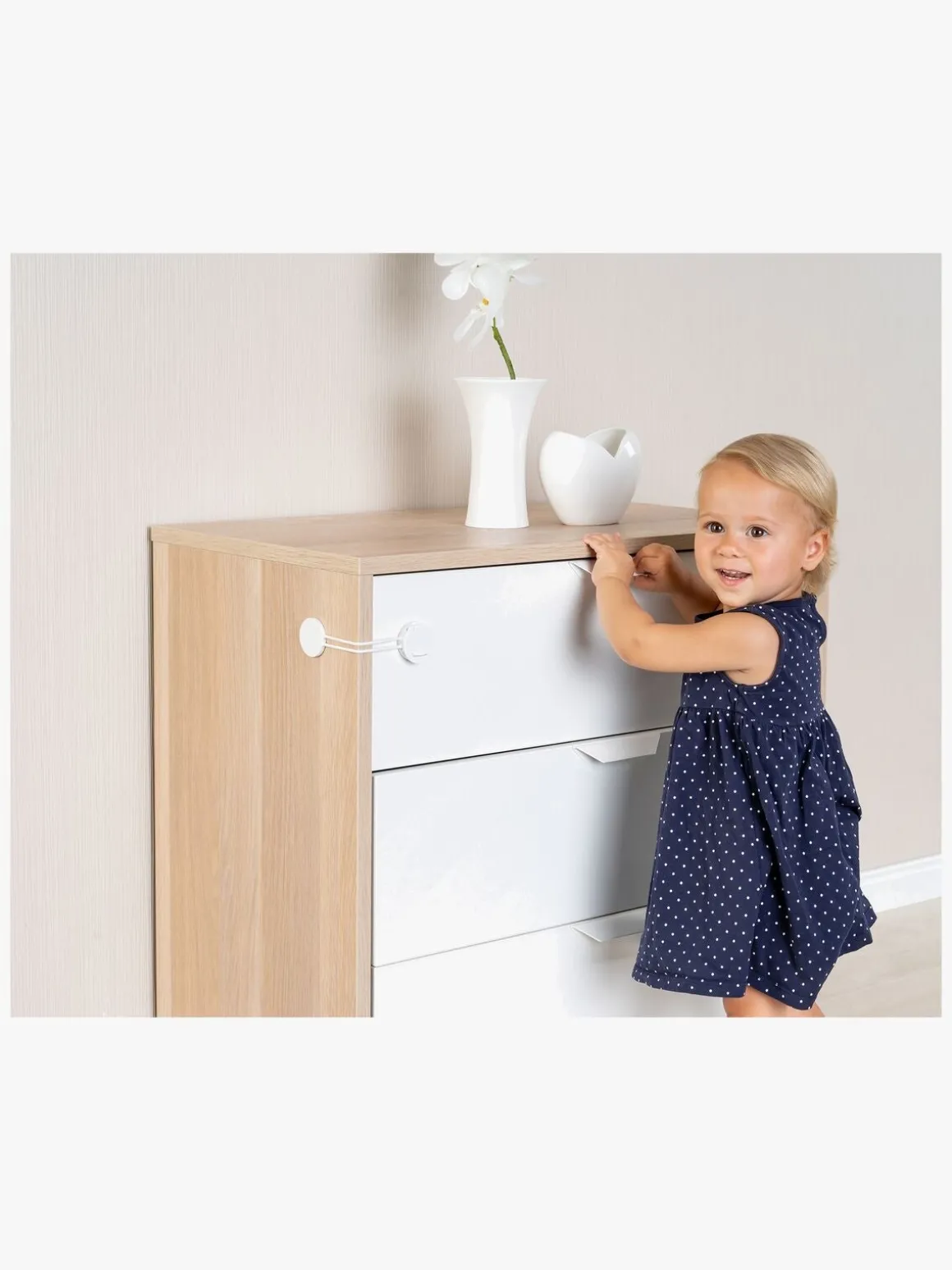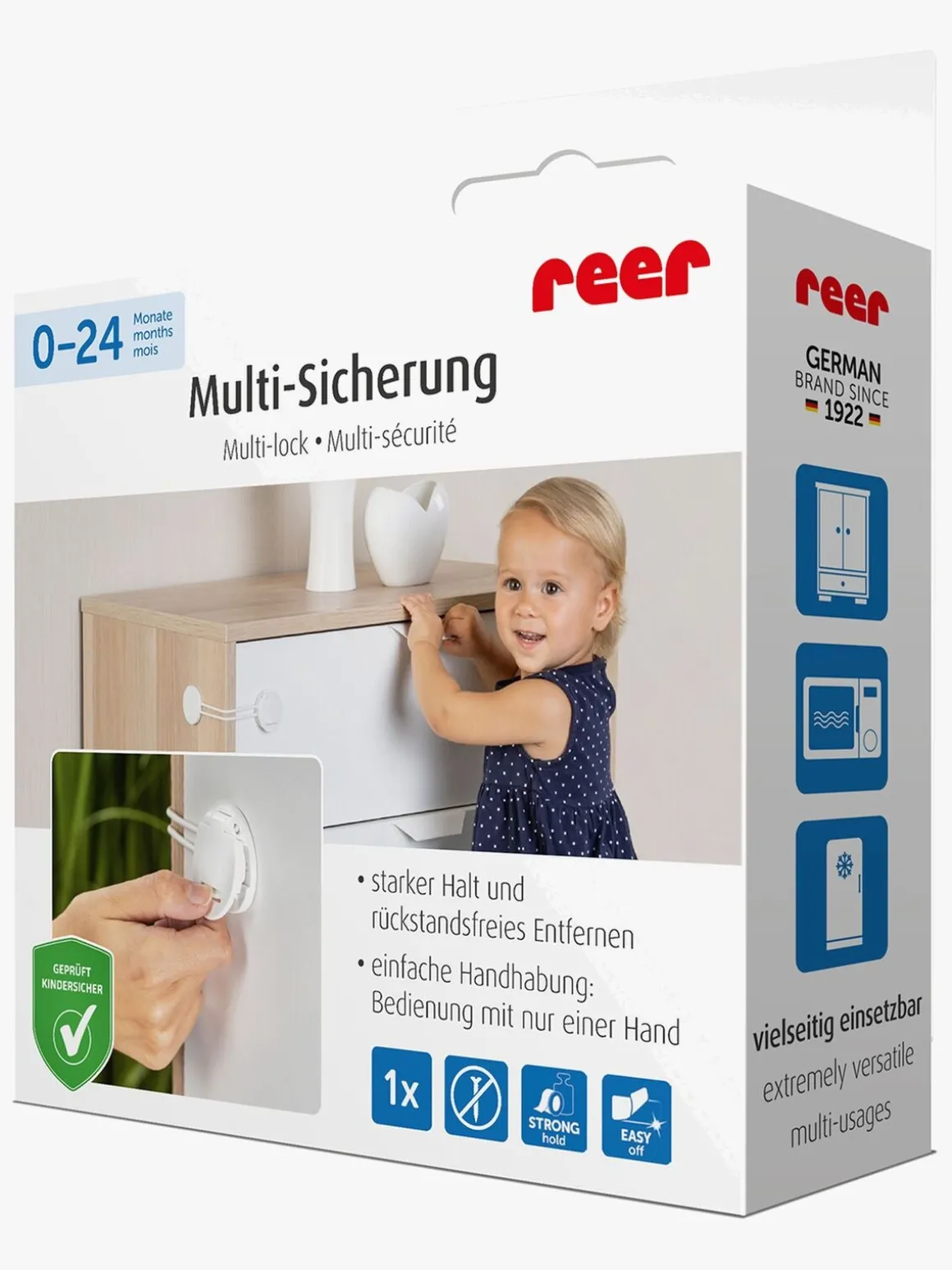 – Alsidig lås til skabe, skuffer og apparater som opvaskemaskine og køleskab/fryser.
