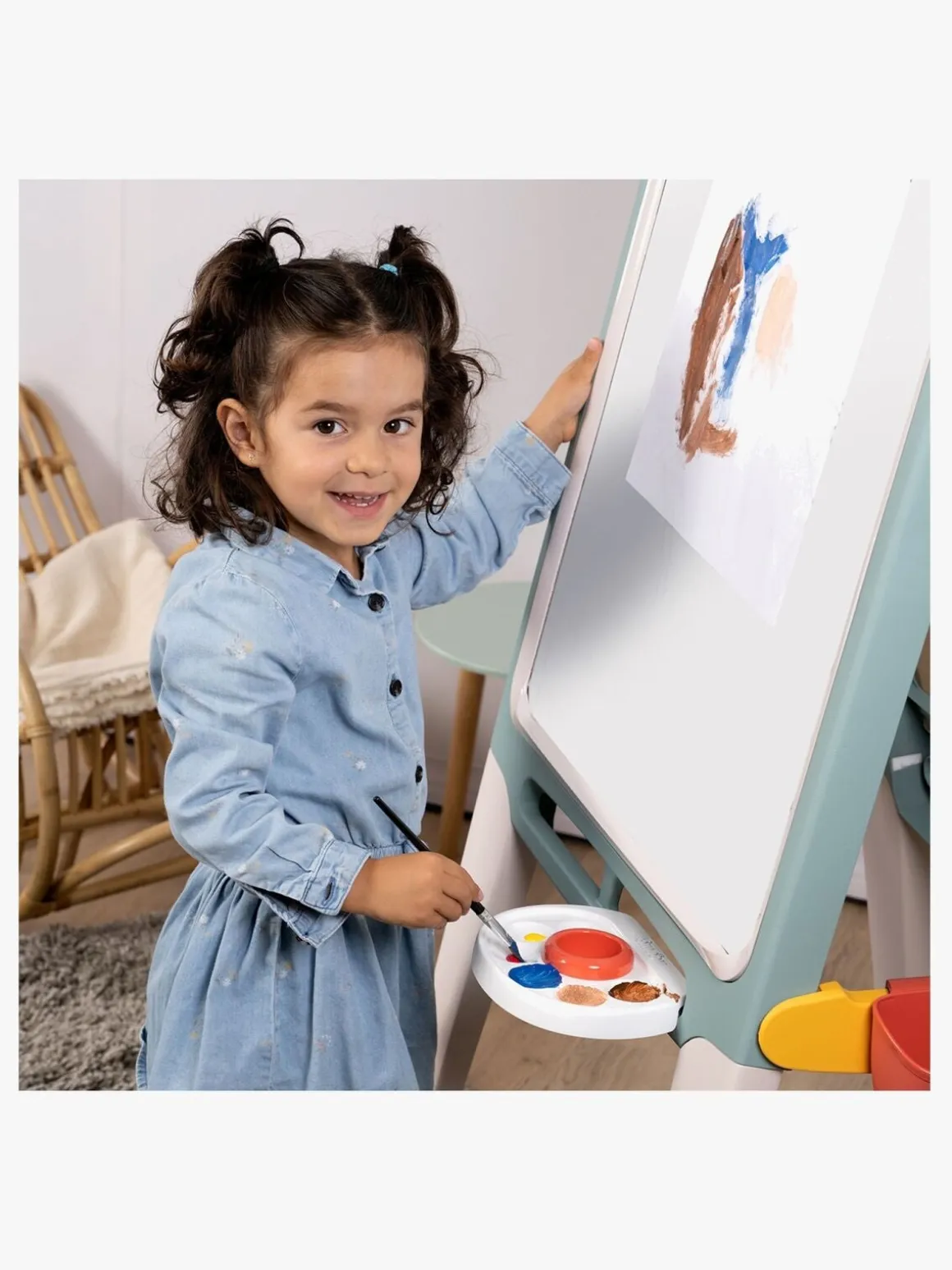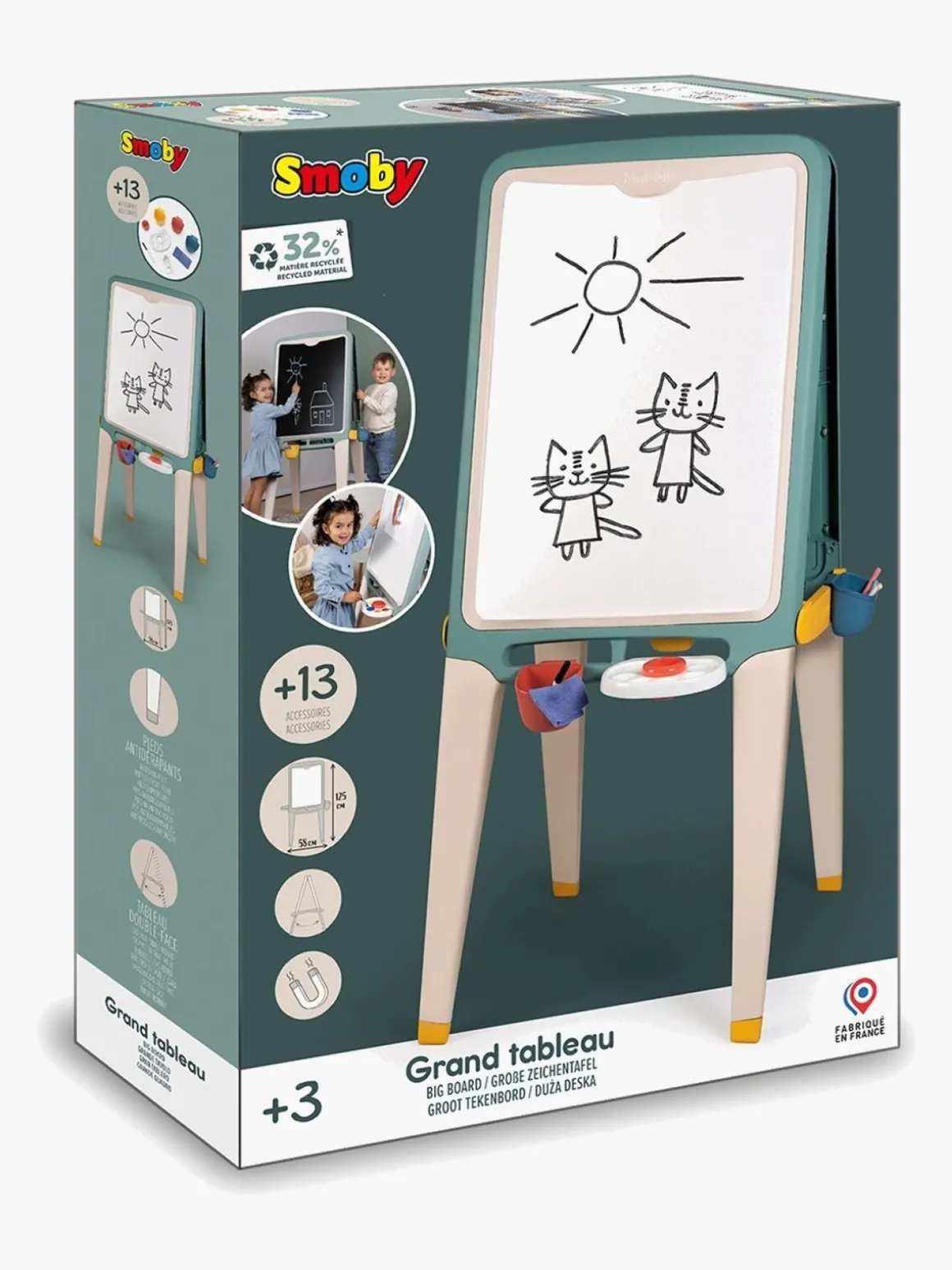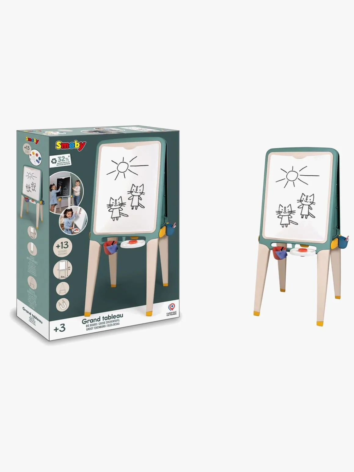 – Indeholder: 1 dobbeltsidet staffeli, 1 paletter, 6 farvekridt, 3 beholdere, 1 vasketøj.