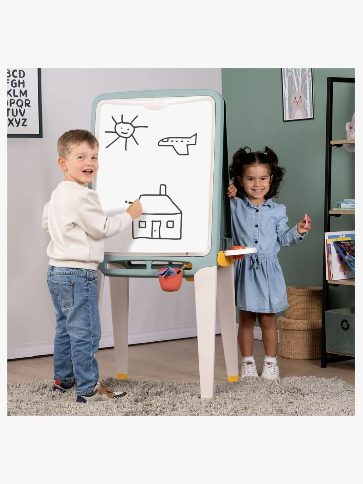 – Staffeliet kan bruges både som whiteboardtavle til markers og magneter og som kridttavle til kridt og kreativ skrivning.