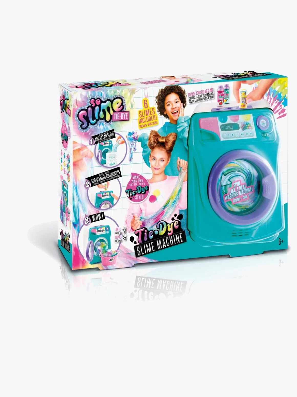 – Seks poser med farveløst slime og tre farver, som du kan blande efter eget valg, medfølger.