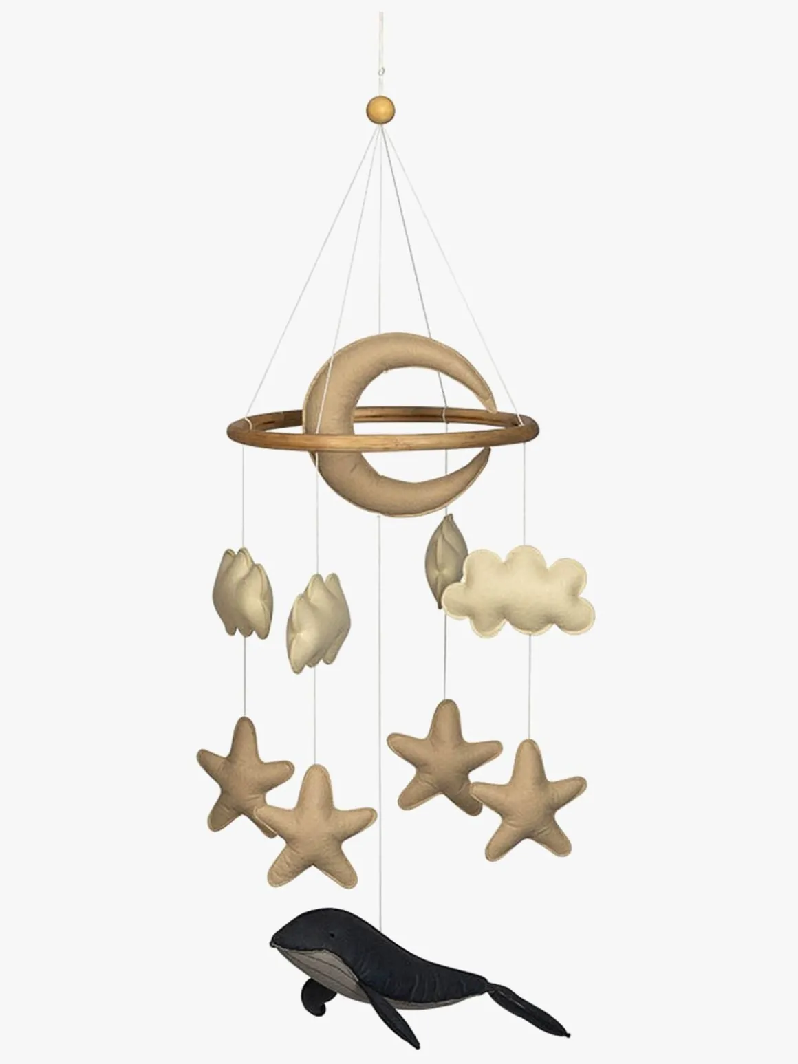 – For at undgå sammenfiltring er nogle af snorene bundet sammen, så sørg for at klippe den rigtige snor af, når du pakker uroen ud.