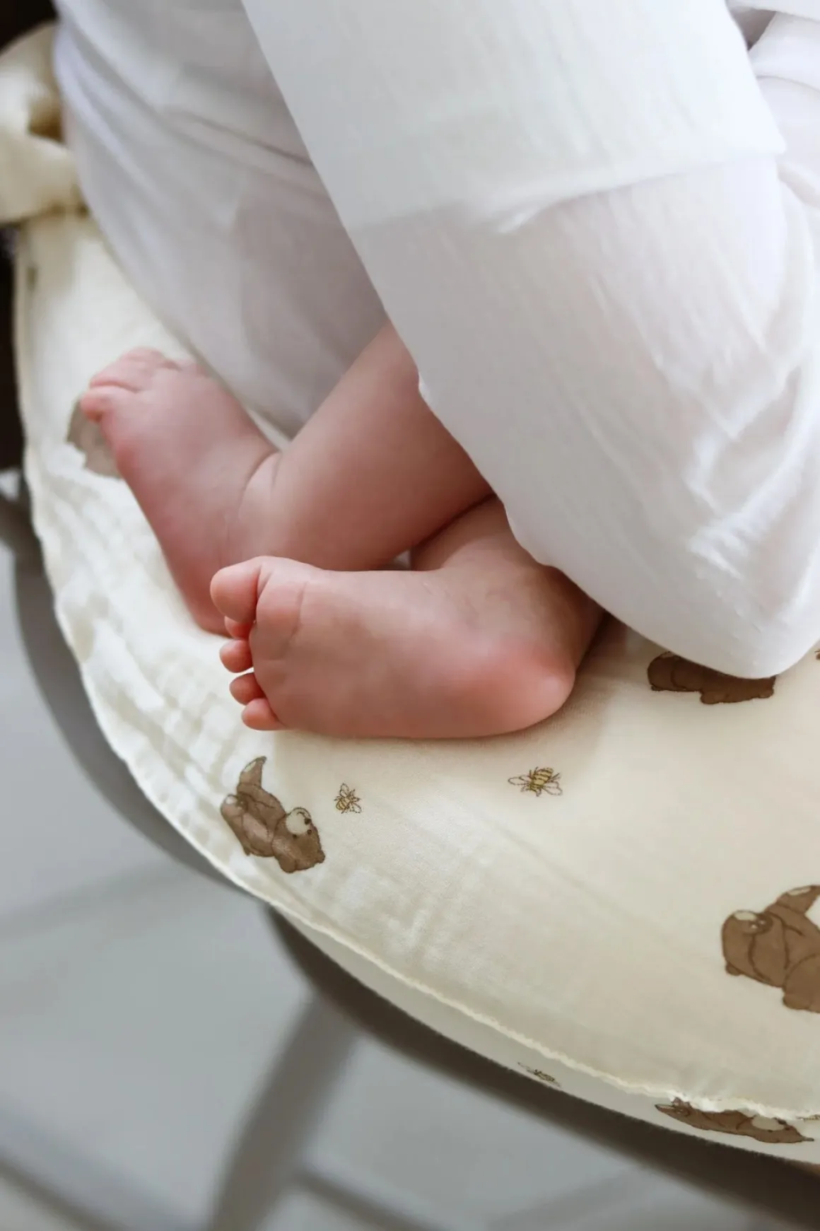 – Ekstra lange ender, der kan bindes sammen for at skabe et hyggeligt sted at sidde eller rundt om livet for optimal amme-komfort.