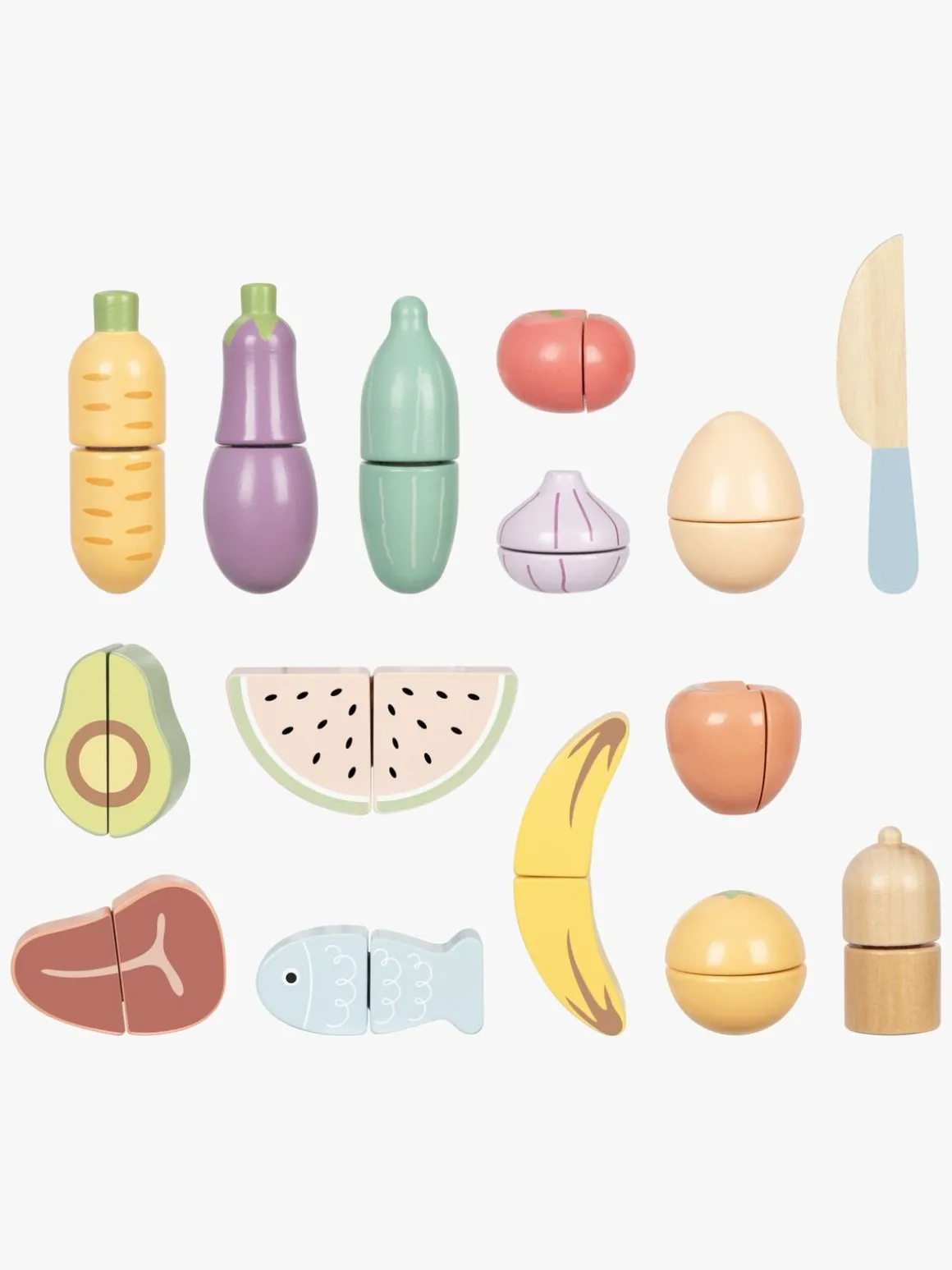 – Indeholder: 1 kurv, 1 skærebræt, 1 legetøjskniv, 13 fødevarer.