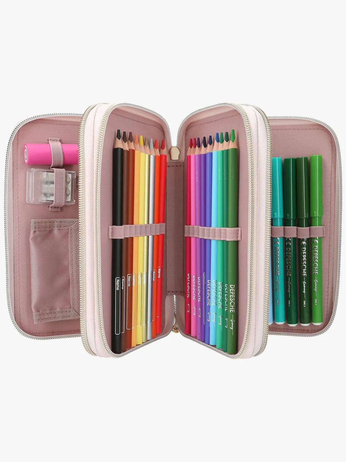 – Indeholder: 1 penalhus, 18 farveblyanter, 18 tusser, 2 blyanter, 1 saks, 1 limstift, 1 blyantspidser, 1 lineal, 1 viskelæder.