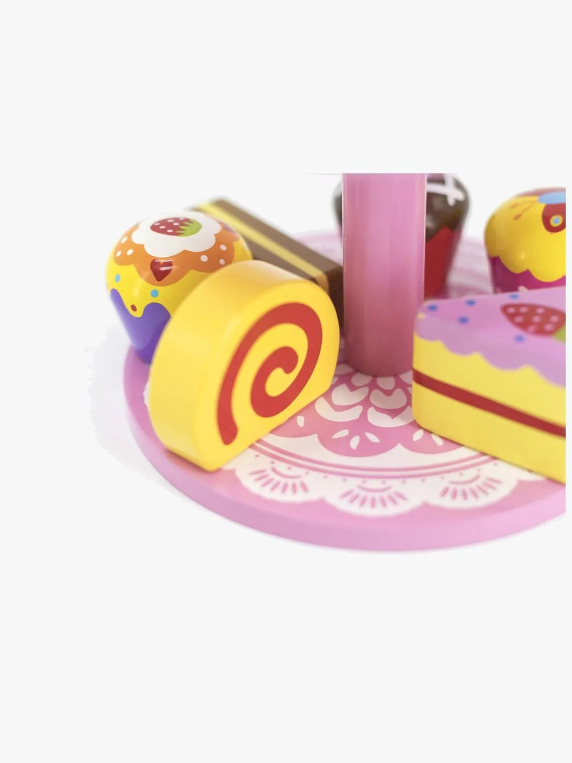 Hele sættet er af træ og passer perfekt ind i legetøjskøkkenet.