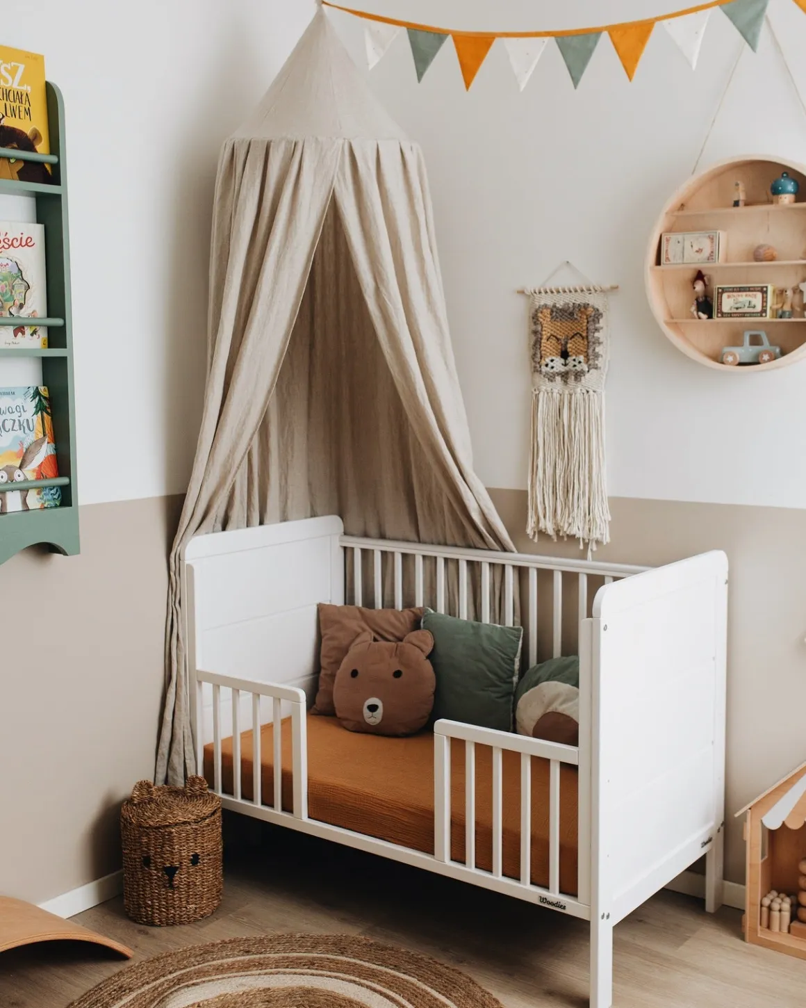 – Bideringe på tremmesengens to langsider medfølger.