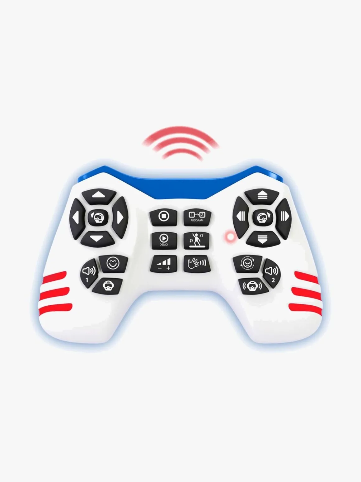 – Styres med bevægelser eller fjernbetjeningen.