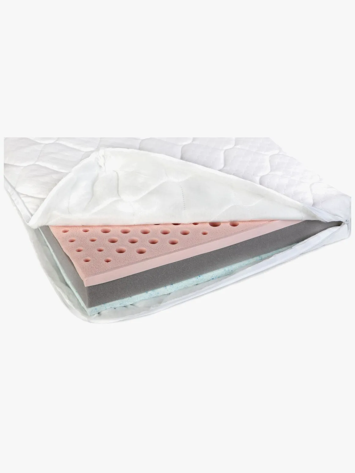 Madrassens ene side er fremstillet af naturlig latexgel, der absorberer overskydende varme, når barnet sover. På den måde skabes der et køligt og behageligt sovemiljø. Madrassens anden side består af latex-memoryskum med luftspalter, der former sig efter kroppen.